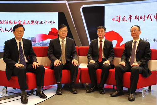 座談會第二場邀請國務(wù)院發(fā)展研究中心副主任王一鳴、中國社科院信息情報院黨委書記姜輝、天津大學(xué)馬克思主義學(xué)院院長顏曉峰、首都師范大學(xué)出版社總編輯楊生平做客人民網(wǎng)強國論壇,圍繞學(xué)習(xí)《三十講》所關(guān)注的“社會主義意識形態(tài)”、“馬克思主義思想方法”、“全球治理合作”等話題與網(wǎng)友進(jìn)行在線交流。與會嘉賓一致認(rèn)為,《三十講》統(tǒng)分結(jié)合、邏輯清晰、全面系統(tǒng)地闡述了習(xí)近平新時代中國特色社會主義思想的重大意義、科學(xué)體系、豐富內(nèi)涵、精神實質(zhì)和實踐要求,是學(xué)習(xí)領(lǐng)會習(xí)近平新時代中國特色社會主義思想的重要理論讀物。