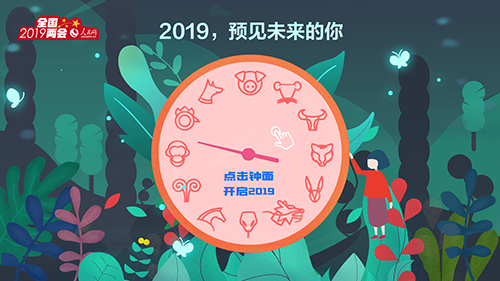 打開人民網(wǎng)兩會專題,便可看見“萬紅叢中一點(diǎn)綠”,這一抹“綠”便是特別策劃“2019兩會,預(yù)見未來”。該策劃的封面設(shè)計(jì)不僅呼應(yīng)主題,且頗具神秘感,時間元素貫穿全部場景。