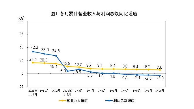 國家統(tǒng)計(jì)局?jǐn)?shù)據(jù)顯示,今年前10個月,全國規(guī)模以上工業(yè)企業(yè)營業(yè)收入同比增長7.6%,利潤同比下降3%。國家統(tǒng)計(jì)局工業(yè)司高級統(tǒng)計(jì)師朱虹解讀工業(yè)企業(yè)利潤數(shù)據(jù)時表示,總體看,工業(yè)企業(yè)利潤下降,結(jié)構(gòu)繼續(xù)改善,部分中下游行業(yè)利潤回升明顯。但也要看到,近期國內(nèi)疫情散發(fā)多發(fā),世界經(jīng)濟(jì)衰退風(fēng)險(xiǎn)加劇,工業(yè)企業(yè)效益恢復(fù)面臨較大壓力。